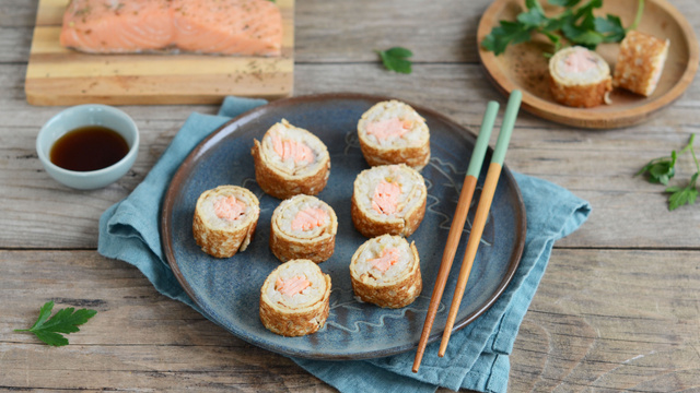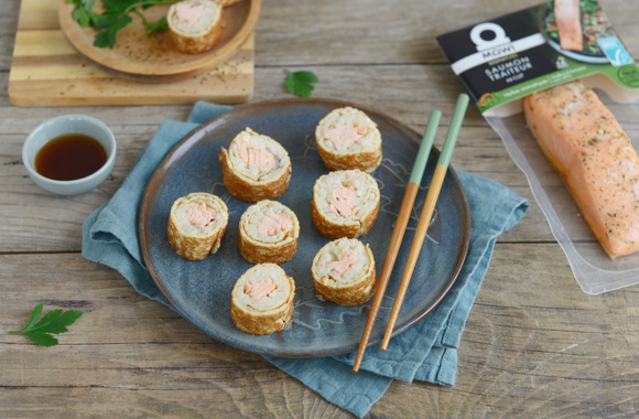 Des makis surprenants avec des crêpes, un risotto et du saumon mi-cuit aux herbes aromatiques. Un mariage parfaitement gourmand.