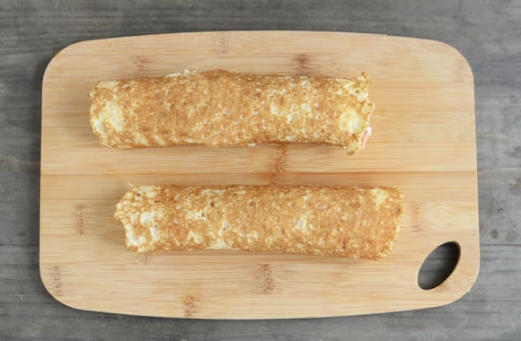 6Roulez la crêpe en serrant un peu, filmez le boudin de crêpe à l'aide d'un film alimentaire.