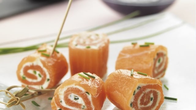 Tartinez de Tartare® les tranches de saumon fumé, puis roulez-les sur elles-mêmes. Entreposez-les au frais sur une assiette.