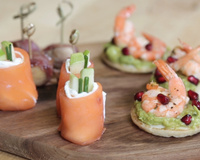 Découpez les tranches de saumon fumé dans la longueur en lanières d'environs 2 cm de largeur. Tartinez les lanières de saumon fumé avec le fromage à tartiner.