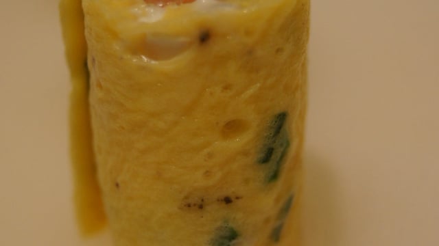 Cuire l'omelette en 3 fois afin d'obtenir 3 omelette les plus fines possible. Pour cela, utilisez une large poêle et cuisez la préparation à couvert et à feu doux pendant 3-4 min (pas plus). - 2