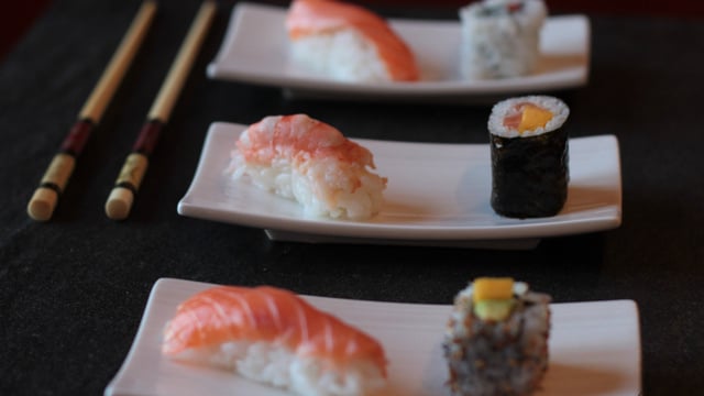 Traditionnellement, on saisit le sushi ou le maki avec ses baguettes et on le trempe dans la sauce soja et on le déguste avec un peu de wasabi. Entre chaque bouchée, on se rince la bouche avec une lamelle de gingembre.
