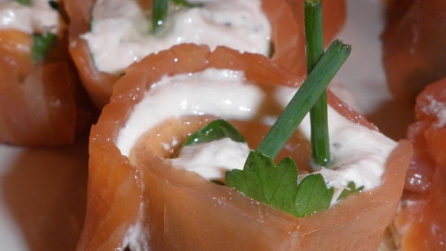 Recouvrir chaque tranche de saumon de feuilles de persil plat. Étaler un peu de préparation saumon et ricotta et rouler. Puis couper en tronçons comme pour des makis traditionnels.