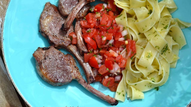 Servez la viande, les pâtes et la salsa et ... bon appétit !