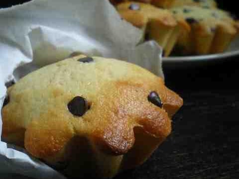 Préchauffer le four à 180°C. Dans un saladier, fouetter les oeufs avec le sucre jusqu'à ce que le mélange blanchisse. Faire fondre le beurre 30 sec au micro-ondes puis le verser dans le mélange sans cesser de remuer. Ajouter le lait mélangé au yaourt puis la farine, la poudre d'amande, la levure et le sel. Mélanger puis ajouter les pépites de chocolat.