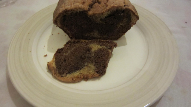 Dans un moule à cake en silicone ou beurré et fariné, verser une partie de la préparation nature puis celle au Nutella et recouvrir avec le reste de préparation nature. Passer la lame d'un couteau pour mélanger légèrement.
