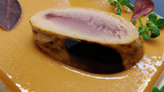 Marbré de foie gras de canard au vinaigre de miel et coulis de kaki