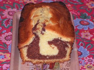 Beurrez et fariner un moule à cake, verser au fond du moule la moitié de la pâte a la vanille, verser dessus la pâte au cacao et ensuite finir par le restant de pâte à la vanille. Cuire au four préchauffé à 200° pendant 40 mn. Laisser refroidir avant de démouler. Laisser reposer ce gâteau une douzaine d'heure avant de déguster.