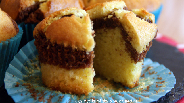 Un marbré vanille et chocolat en portions individuelles. Ce mini marbré est déclinable aussi en cupcakes ! Ajoutez simplement un topping sur le dessus.