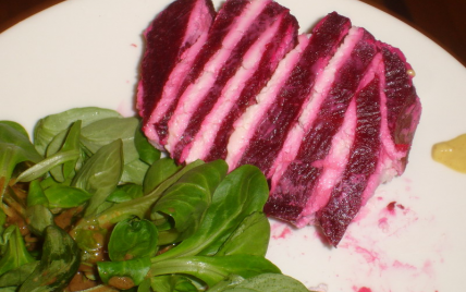Intercaler tranche de betterave et couche de chèvre assaisonné : commencer et terminer par de la betterave. Réfrigérer au moins 2h.
