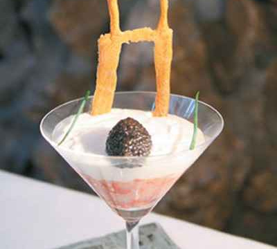 Cuisez celle-ci au four à 180°C. Faites le montage dans un verre en mettant une couche de langoustine, choux-fleur puis le caviar d'Aquitaine. Décorez avec la tuile et une branche de ciboulette.