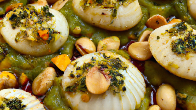 Déposez les tranches de Saint-Jacques, ajoutez les pistaches concassées, les baies roses, couvrez d'un film et gardez au frais 1 heure en les retournant au bout de 30 minutes.