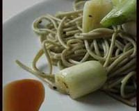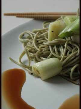- 6Garnir les assiettes d'une bonne poignet de pâtes par personne, y déposer des tronçons d'oignons nouveau et servir avec la sauce chaude (pour une effet chaud froid) ou froide (pour les manger à la japonaise), selon votre goût...
