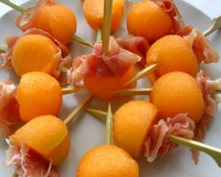 - Couper le melon en fines tranches avec le jambon de Bayonne