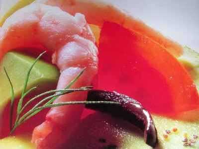 Melon fruits exotique crevette roses.