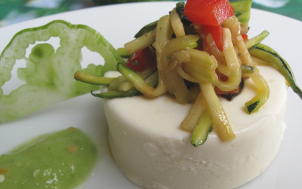 Un plat sucré / salé végétarien autour de l'alliance fromage et citron : panna cotta végan et nem de lemon curd.