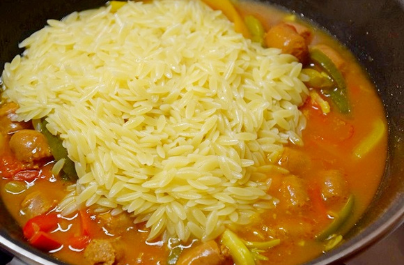 NB: La prochaine fois, je cuirai les merguez séparément afin qu'elles soient plus fermes et qu'elles aient un peu de "croquant". Vous pouvez servir ce plat avec d'autres pâtes ou encore du riz.