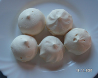 A l'aide de deux cuillères à soupe, placer 12 petits tas de blancs en neige sur la plaque à four. Faire cuire les meringues 2 heures dans le bas du four.