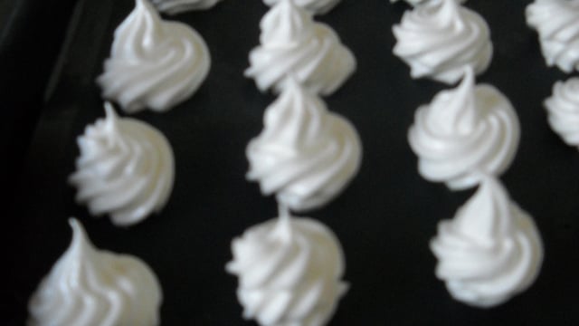 Aidez vous d'une poche à douille pour bien former les meringues et mettez sur plaque avec du papier sulfurisé.