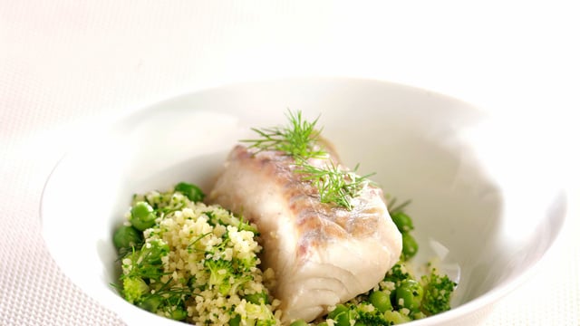 Une recette de poisson et ses légumes verts.