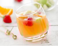 Des dés de pommes et d'oranges, des morceaux de fraises fraîches ou de fruits de saison