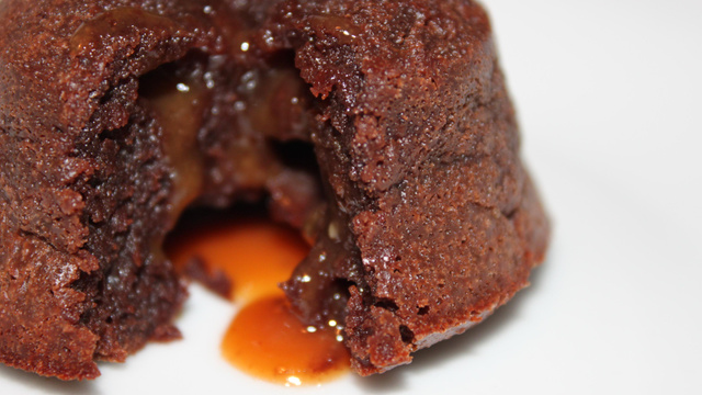 Un fondant au chocolat corsé qui dévoile un cœur coulant au caramel beurre salé.
