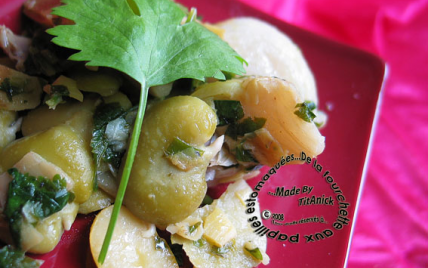 - 3Dans une petite cocotte, faites revenir rapidement, dans un filet d'huile d'olive l'ail et les fonds d'artichauts. Ajoutez le jus de citron et l'eau. Amenez à ébullition. Couvrez. Faites cuire une dizaine de minutes à feu modéré. Ajouter les fèves, couvrez et cuire encore dix minutes. Découvrez et ajoutez la coriandre lavée et ciselée et le reste de l'huile d'olive. Cuire à feu vif 5 minutes ou jusqu'à évaporation du liquide.Servez chaud !