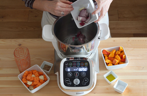 7Ajoutez les carottes, les panais et le potimarron coupés en dés.