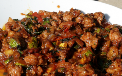 - Faire bien revenir dans l'huile chaude la farce avec l'échalote hachée (coloration moyenne). (5mn)