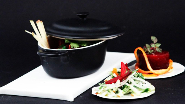 Déposer la viande dans 4 cocottes individuelles. Arroser avec la marinade. Fermer la cassolette.