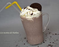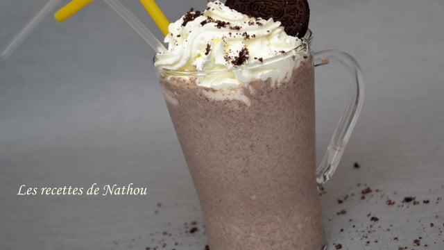 Répartissez le milk-shake dans 2 grands verres, recouvrez de Chantilly et décorer avec un Oréo.