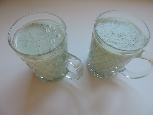 NB: Vérifier la consistance souhaitée après avoir mixé: si trop épais, ajoutez un peu de lait; si trop liquide, ajoutez un peu de glace ou encore un peu de banane...