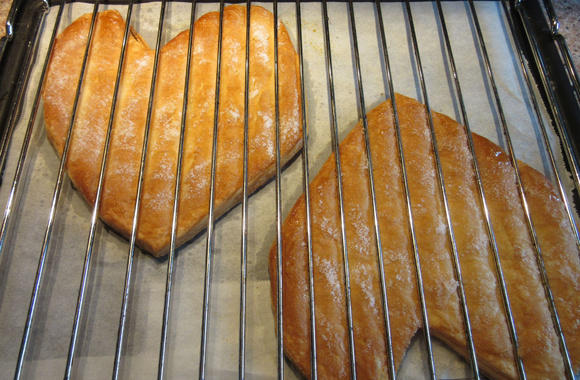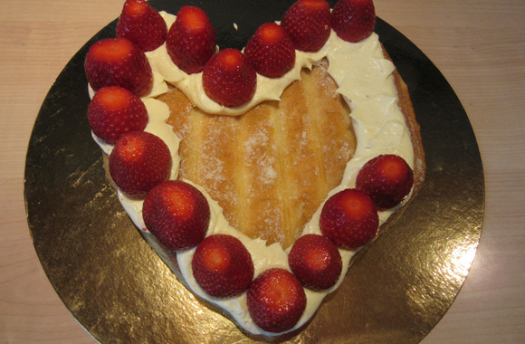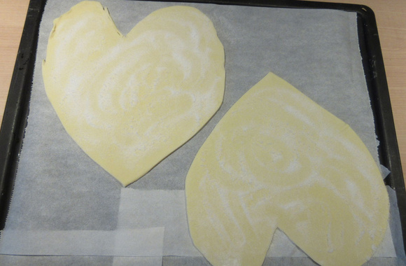 Etaler 200g de feuilletage sur 2mm d’épaisseur en carré et découper votre forme de cœur d’environ 25 à 27 cm de long. Recommencer pour faire le dessous. Deux couches suffisent. Piquer et poser sur la plaque du four. Saupoudrer de sucre semoule les deux mille feuilles. Important : Déposer une grille de four pour éviter le gonflement excessif de la pâte. Cuire ainsi 20 minutes à 190°C. Sortir du four et retirer la grille. Retourner le feuilletage et remettre au four 10 minutes. Sortir et saupoudrer maintenant de sucre glace (sans excès), on va « glacer « le mille feuille comme les grands pâtissiers. On met le four sur la position grill et on remet notre plaque au four. Le sucre va fondre d’abord et ensuite caraméliser. Attention, rester impérativement devant le four !!! Dès que la surface est caramélisée uniformément. On sort et on refroidit.
