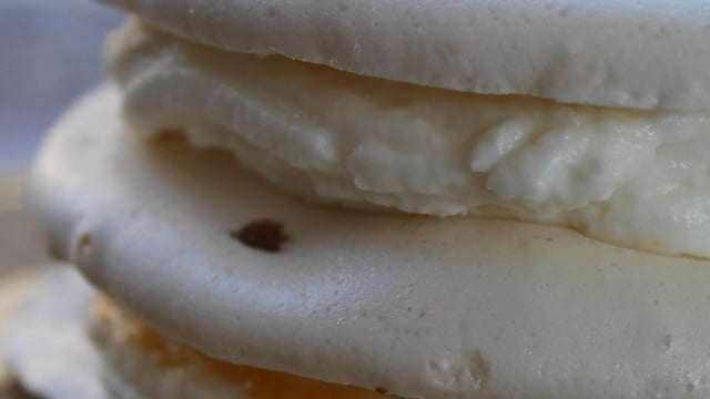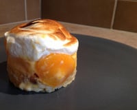 Ici, la pâte feuilletée du traditionnel mille-feuille est remplacée par des disques de meringue et la garniture est une compotée d'abricots associée à une crème vanillée à base de mascarpone.