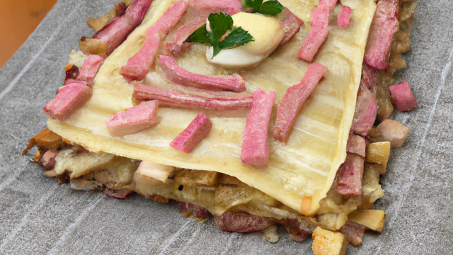 Sauce betterave : mixer la betterave avec la crème, ajouter 2 cuillères à soupe d'eau et assaisonner.Touche finaleDresser le mille-feuille au milieu de