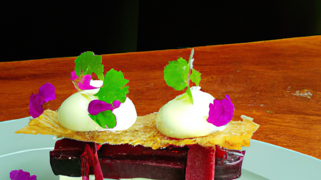 Servez en arrosant les mille-feuille de betterave de sauce vinaigrette.