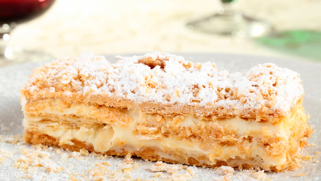 Un gâteau d'origine russe, composé de feuilletage et de crème comme un mille-feuilles.