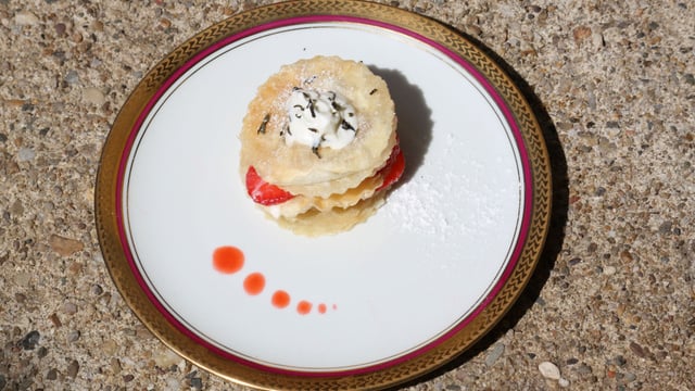 Un millefeuille réalisé avec des feuilles de brick, des fraises et de la chantilly au jasmin... De quoi régaler tout le monde !