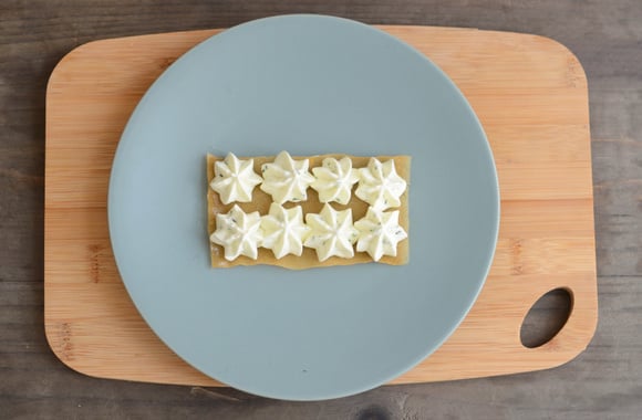 Finissez le millefeuille avec un rectangle de feuille de brick.