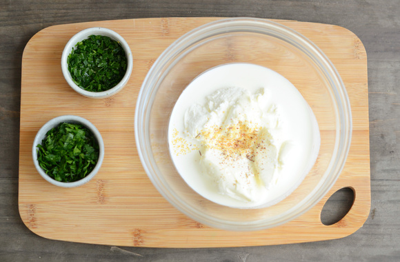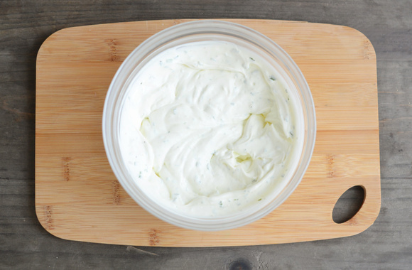 Ajoutez la crème liquide, l'ail haché, la ciboulette et le persil.