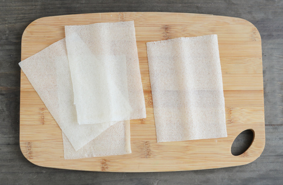 1Découpez chaque feuille de brick en 3 ou 4 rectangles identiques.