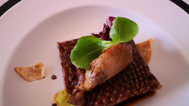 Terminez par une fine feuille de caramel de coriandre. Parsemez de noisettes concassées. Parsemez chaque assiette de petits rectangles de gelée de vinaigre balsamique. Servez.