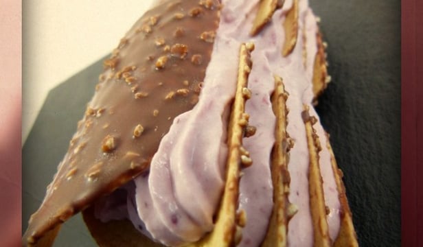 Faites le montage un peu avant de servir, sinon la crème va ramollir les tuiles.