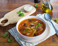 Le minestrone est la soupe familiale italienne par excellence, généreuse et remplie de légumes. Ici, on prend le temps : les haricots, le chou et les racines mijotent longuement pour créer un bouillon riche et naturel, sans avoir besoin de produits transformés. L'ajout des pâtes en fin de cuisson donne de la consistance, tandis que le pesto et le parmesan apportent les saveurs typiques du pays. C’est un plat complet et réconfortant qui se bonifie le lendemain, parfait pour un repas simple et nourrissant.