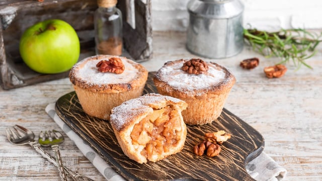 Ces mini tourtes ou apple pie nous font craquer. Il s'agit d'une recette typique des pays anglo-saxons. Nous avons choisi une une pâte à l'huile d'olive sans beurre pour les préparer mais vous pouvez utiliser une pâte brisée traditionnelle.