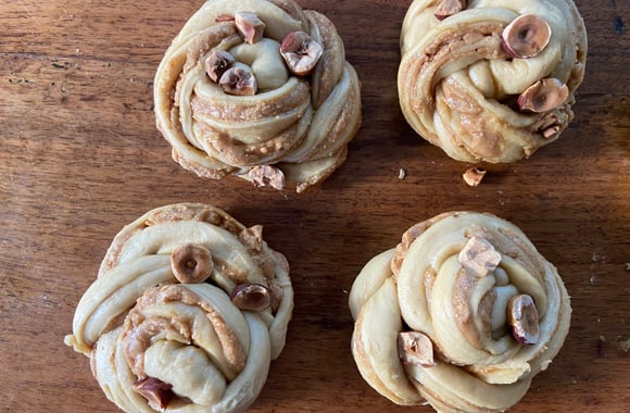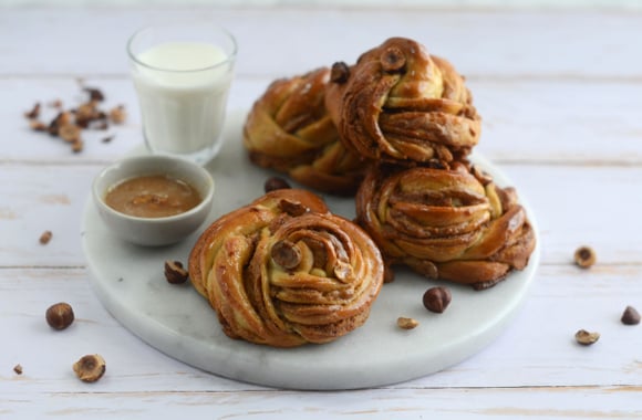 Le praliné ne se contente pas que pour préparer des pâtes à tartiner au chocolat ou pour confectionner des pâtisseries. Il se marie très très bien avec les viennoiseries et voici une recette de mini babka en forme de couronne et garnie de praliné qui va vous ravir.