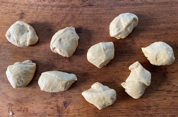 Faites des boules avec les 9 morceaux de pâte.