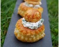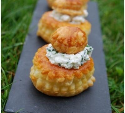 Préparer votre fromagée, écraser à la fourchette le fromage frais de chèvre et ajouter le sel, le poivre et la ciboulette ciselée. Remplir vos bouchées à la reine de fromagée, et rajouter par-dessus le petit chapeau.
