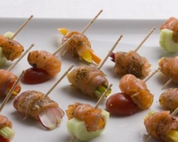 Une recette Labeyrie de mini-brochettes de saumon fumé et légumes pour l'apéritif...
