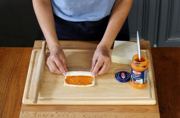 3Badigeonnez-les de pesto rosso.